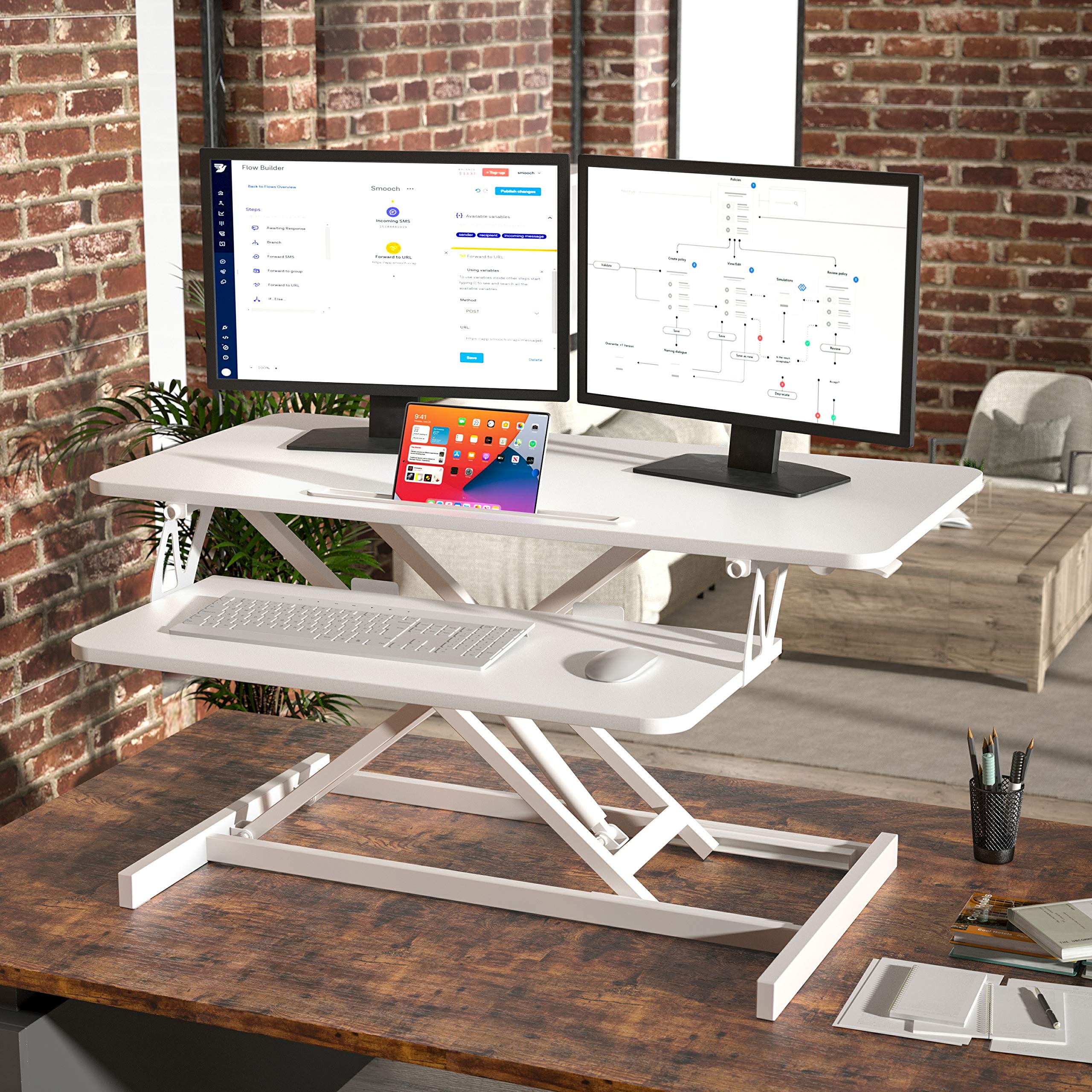 Standing desks have significant health benefits and can reduce the discomfort that comes from sitting down for long periods of time.