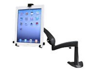 Direct to desk single 618mm dynamic arm desk mount. Mount your tablet to a desk, to a wall or under a cabinet in your kitchen. About monitor desk mounts from ergotron. Practical cable clips in the arm.