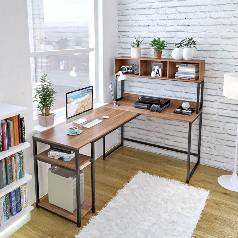 Shop new corner and l shaped desks at every day low prices. This ultramodern l shaped computer desk takes creativity to a whole new level with its elevated center shelf that's fit for a printer or other office essentials. These desks often offer plenty of desk top space since they have two surfaces to work from, and many people use double monitors with this functional set up. Cut pieces to size for your desk.