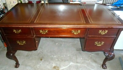 A rare and exceptional ornate carved burled walnut executive lincoln desk produced by the commercial furniture co.