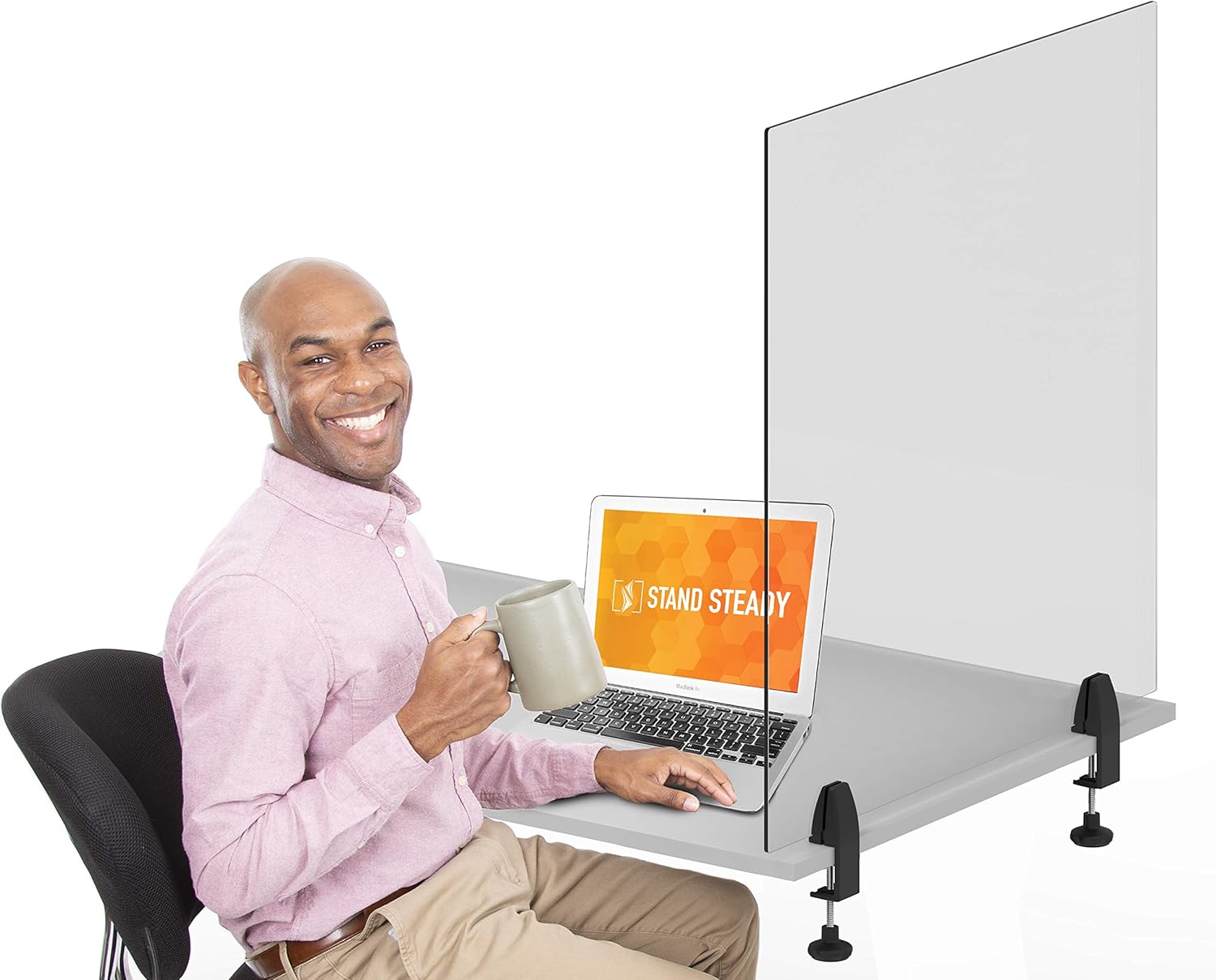 The shield installs in seconds, and will stay securely fastened on the desk.