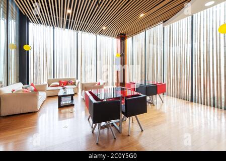Reception desk and lobby in modern gym.