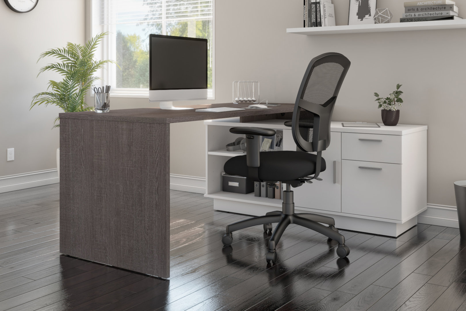 Design plays a much bigger role in an office space than you might expect. Also set sale alerts and shop exclusive offers only on shopstyle. With the attached return & console in walnut with a honed black granite, it will be a solid construction, serving its role for years. Today on modern builds i'm going to show you how to make this plywood desk that's perfect if you need to get more space out of your office area.