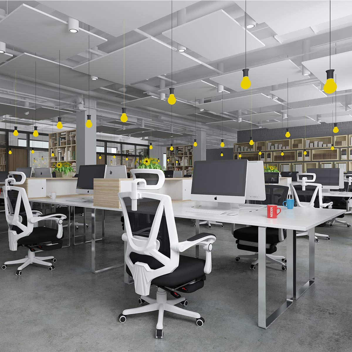Hbada Ergonomic Office Recliner Chair With Footrest High Back Desk Chair With Lumbar Support Height Adjustable Seat Headrest Breathable Mesh Back Soft Foam Seat Cushion White Amazon Co Uk Kitchen Home from m.media-amazon.com