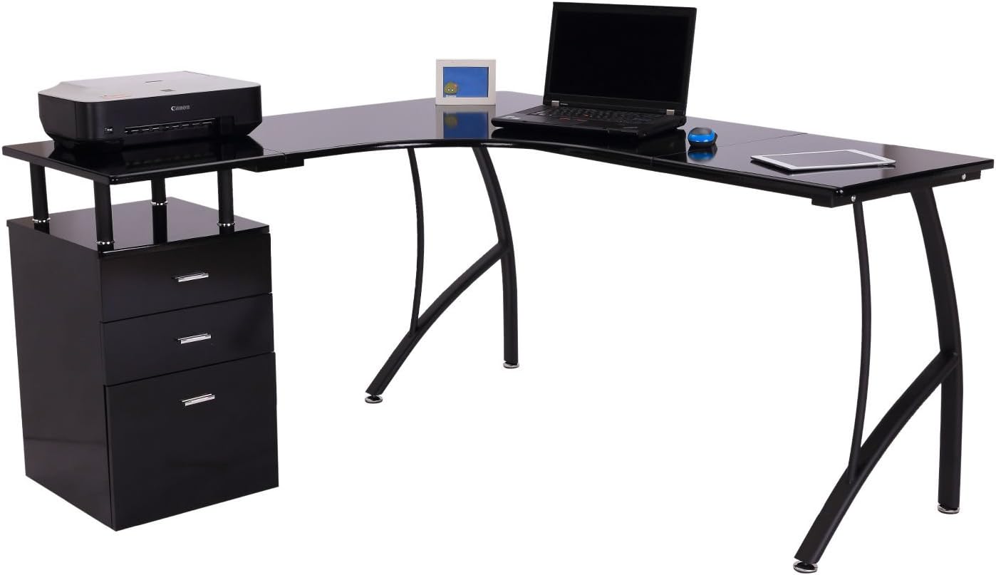 Get Homcom L-Shaped Corner Computer Desk US. The homcom rotating office desk features an original rotating design that can be adjusted to your needs and contains plenty of storage space. A roomy desktop makes a home for your computer, monitor and writing work.