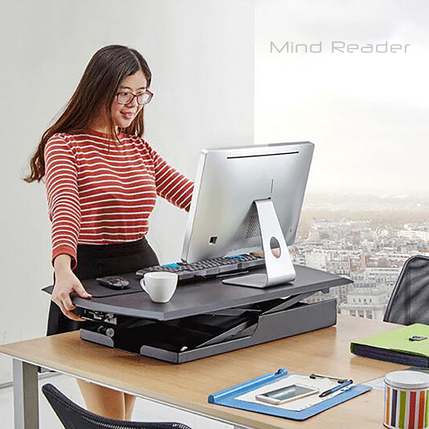 Get Mind Reader Standing Desk US. Mind reader bamboo monitor stand with slot, computer desk organizer bamboo stand: Portability with any desk is a luxury to have and what makes the mind reader 2 tier sit and stand desk one of the best on the market.
