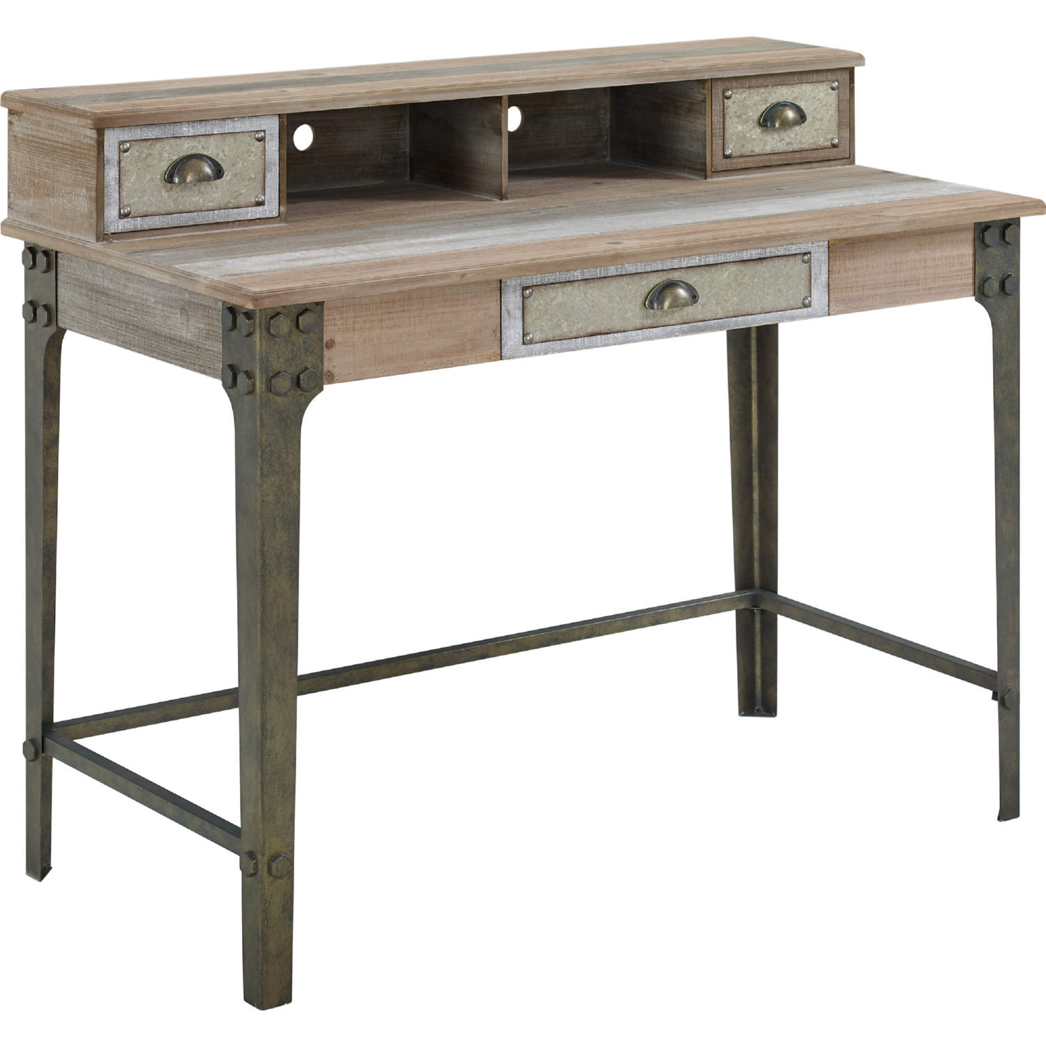 Choose traditional, modern designs or impressive executive desks. Amazing office features a wood and iron desk, arteriors trent wood iron campaign desk, topped with a white marble column lamp placed under window dressed in ivory drapes paired with a cherner task chair atop layered rugs. The wood is sealed with a matt varnish to enhance the visible marks of its past and achieve a functional and durable collection. Well you need to consider this bed, which is made of the wrought iron and wood.