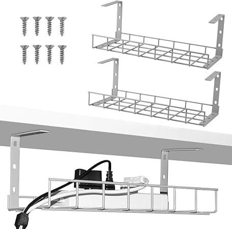 2 packs cable management tray, 16 inches under desk cable organizer for wire management, metal wire cable tray for desks, offices, and kitchens (black).