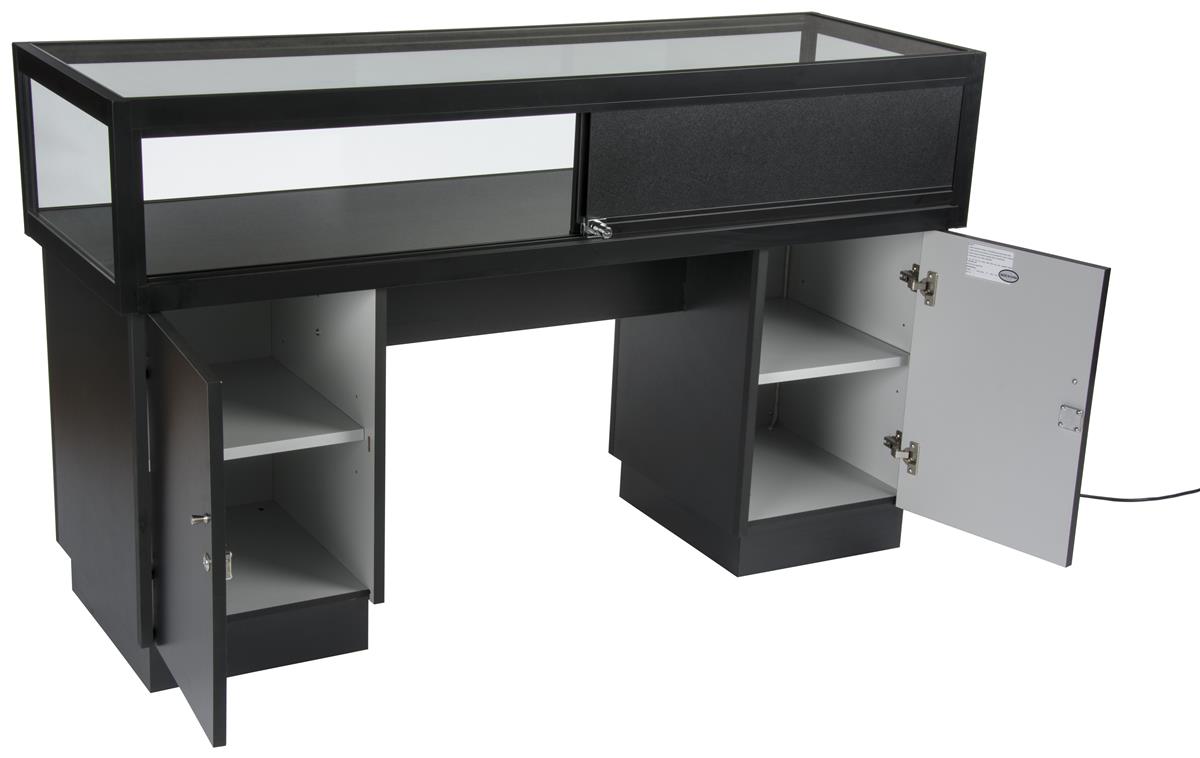 Elegant black aluminum display table top tempered glass show case.