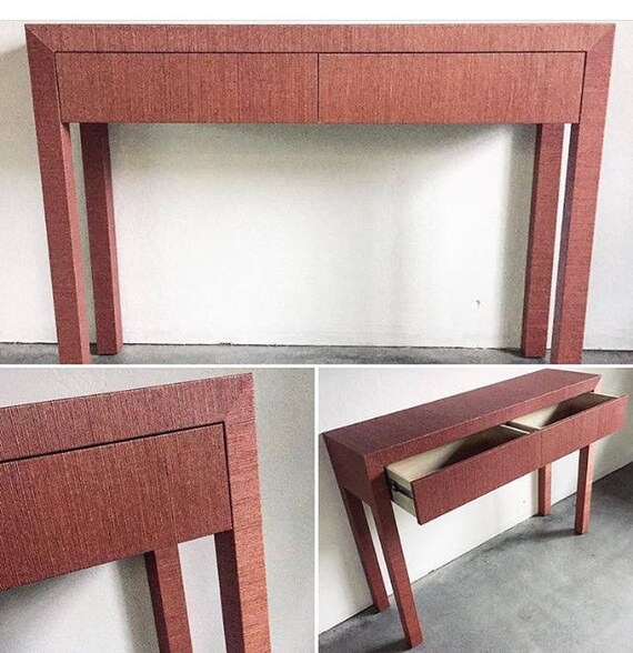 The shelving will probably be faced and covered in birchwood with grey #grasscloth wall treatment. Sisal grasscloth wallcovering by twenty2 | in brill. An antique american drop front desk, grasscloth wall covering and custom sofas by lee jofa create a welcoming vibe. We recommend adding a glass top, and we will be happy to help you source these in your area.